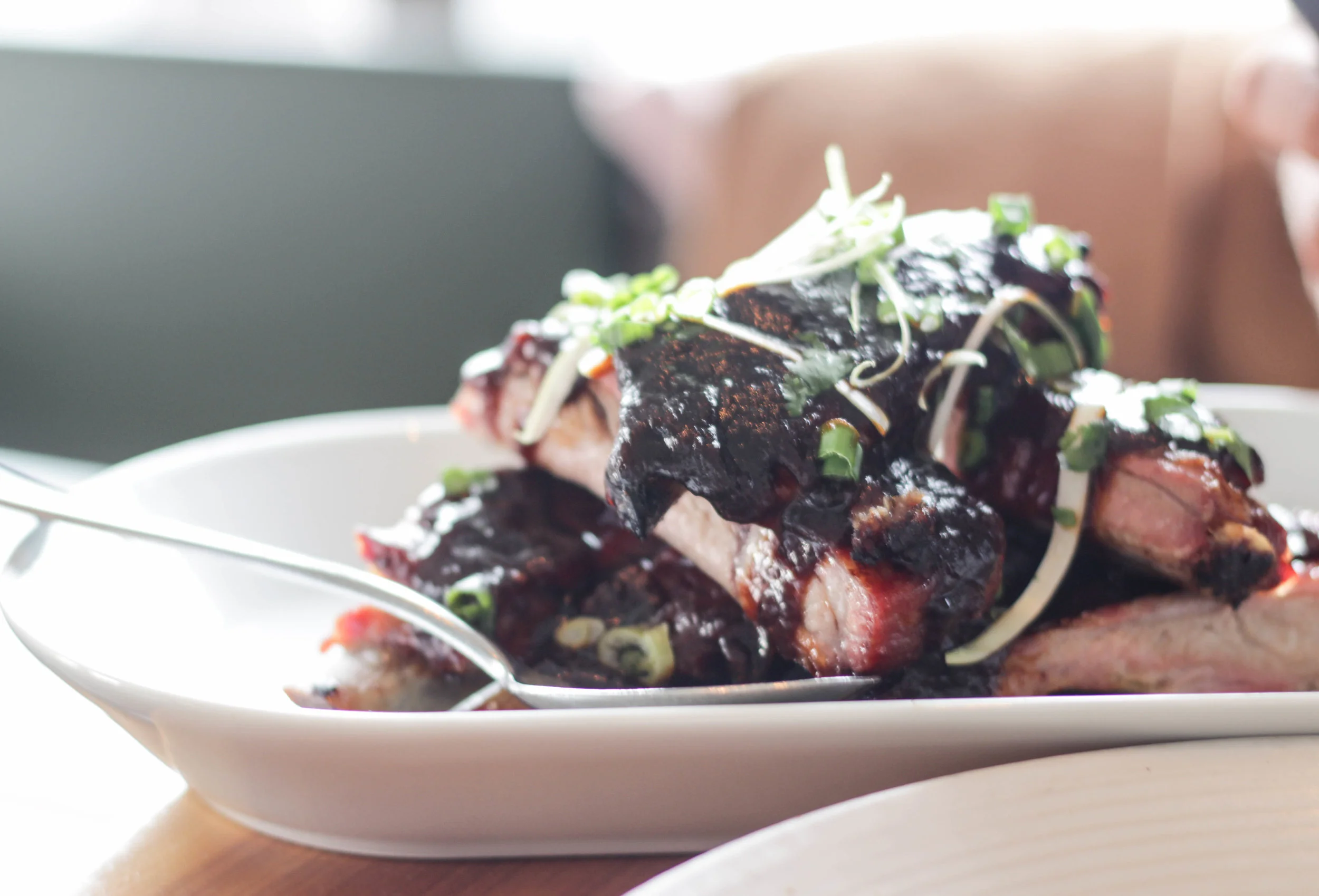 Barbecued willis ranch pork spareribs, scallion, cilantro, honey-hoisin sauce