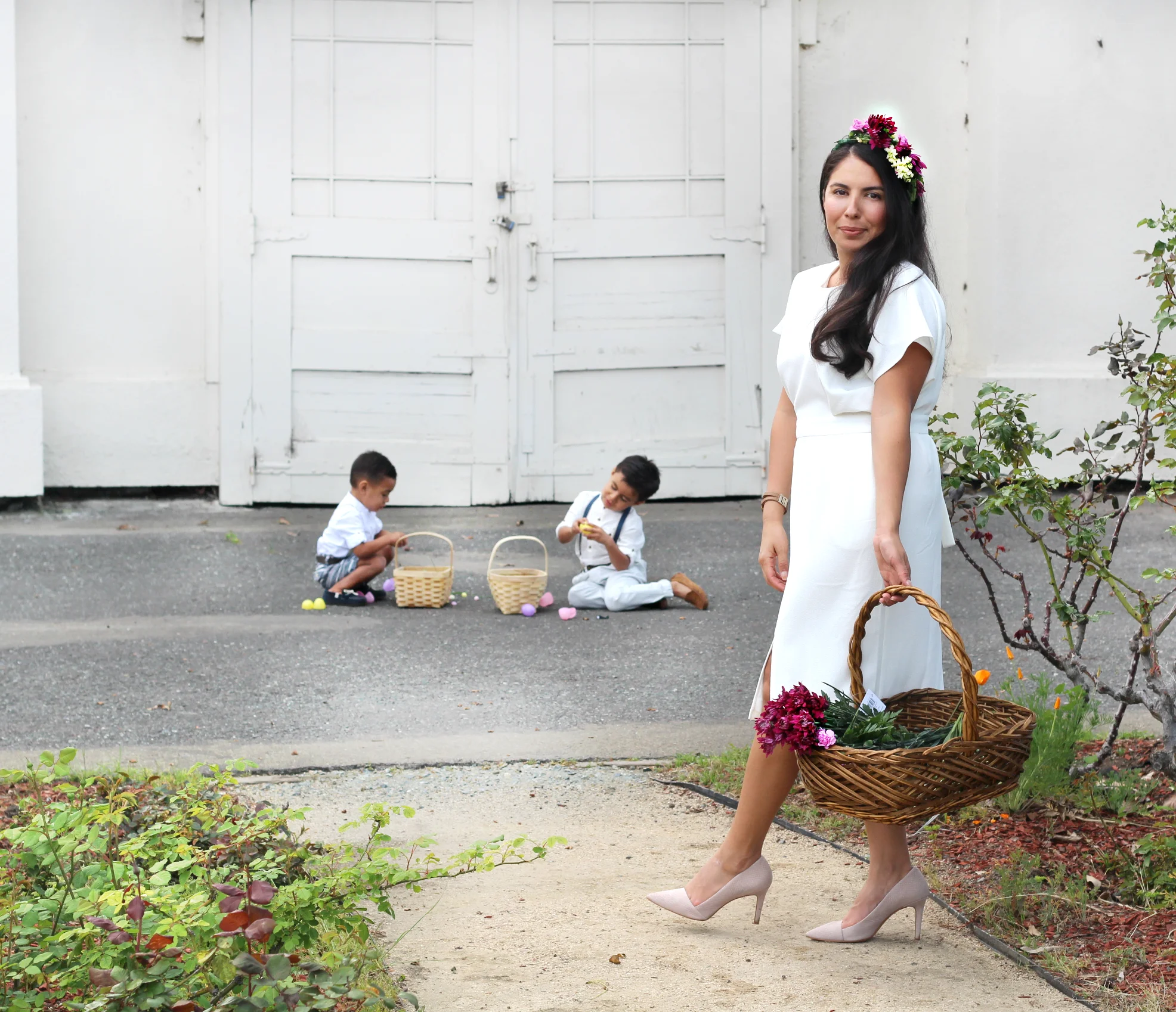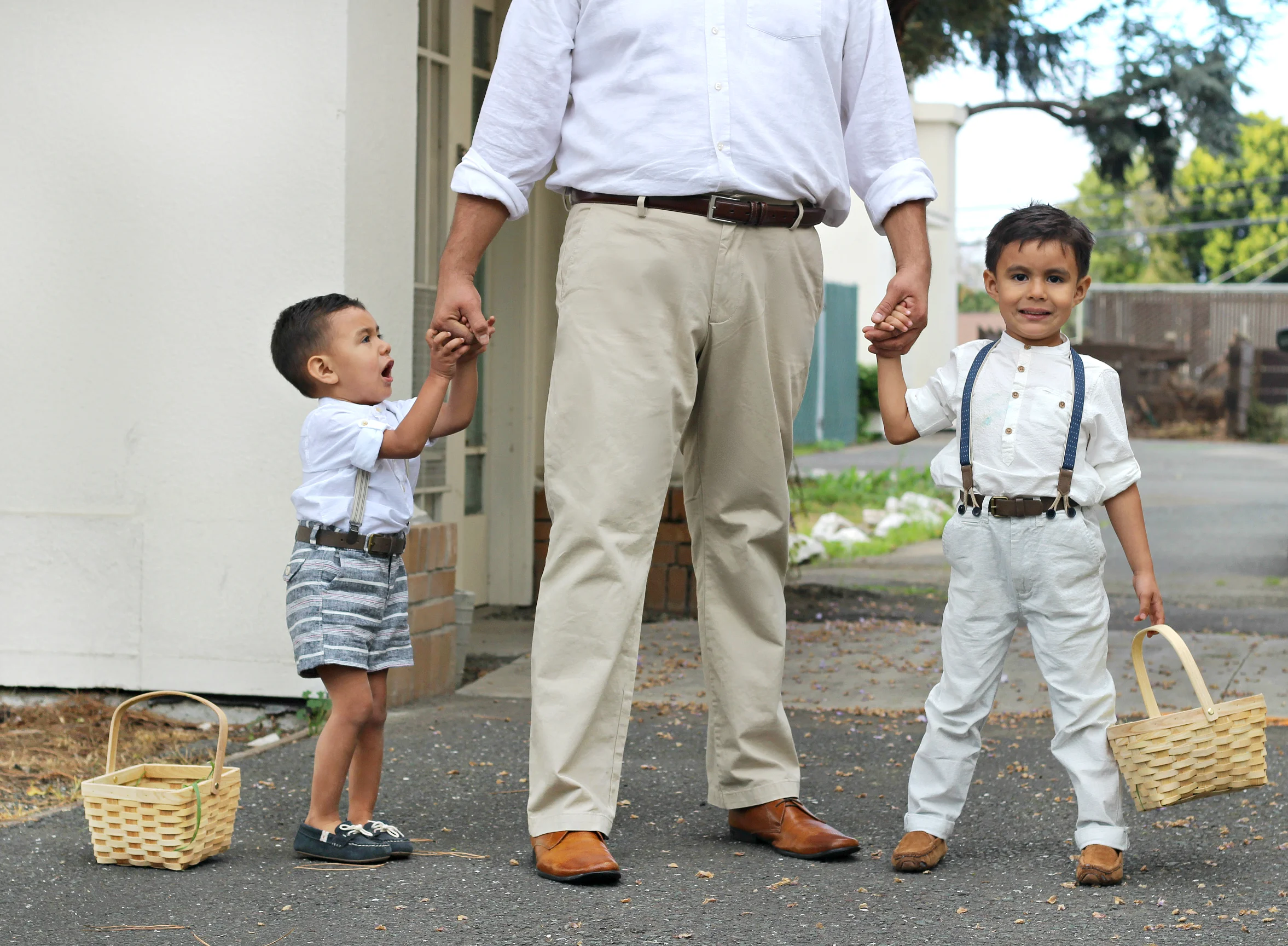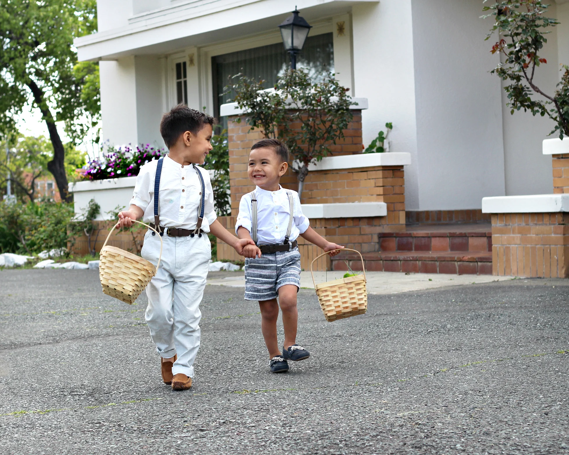Our family Easter photo shoot was a success. You'll see that the boys were eating lots of candy as they kept finding the Easter eggs. My plan worked very well. haha! Also, I try to avoid having the kids staying still for a long time and "posing." Instead, I just let them be and we snap away. Candid is the best way to go with toddlers. I got the baskets from Michael's and I used a 50% off coupon ($2.50) and it was the right look for our photos. The boys outfits are from Zara and Gap, I'll list the items below. One of my favorite things from Zara is the simple style they have every season. It's like men clothes for little boys. The prices are not too bad either.