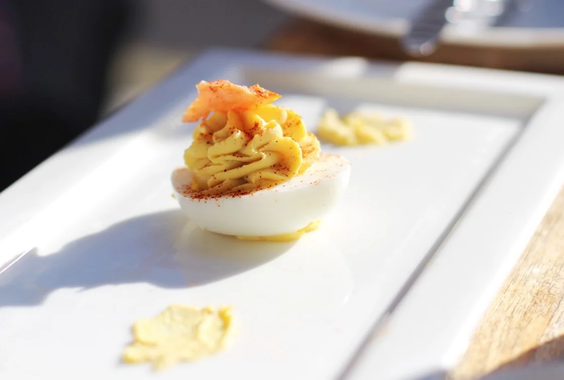 - Deviled Eggs with smoked trout, paprika, and mustard