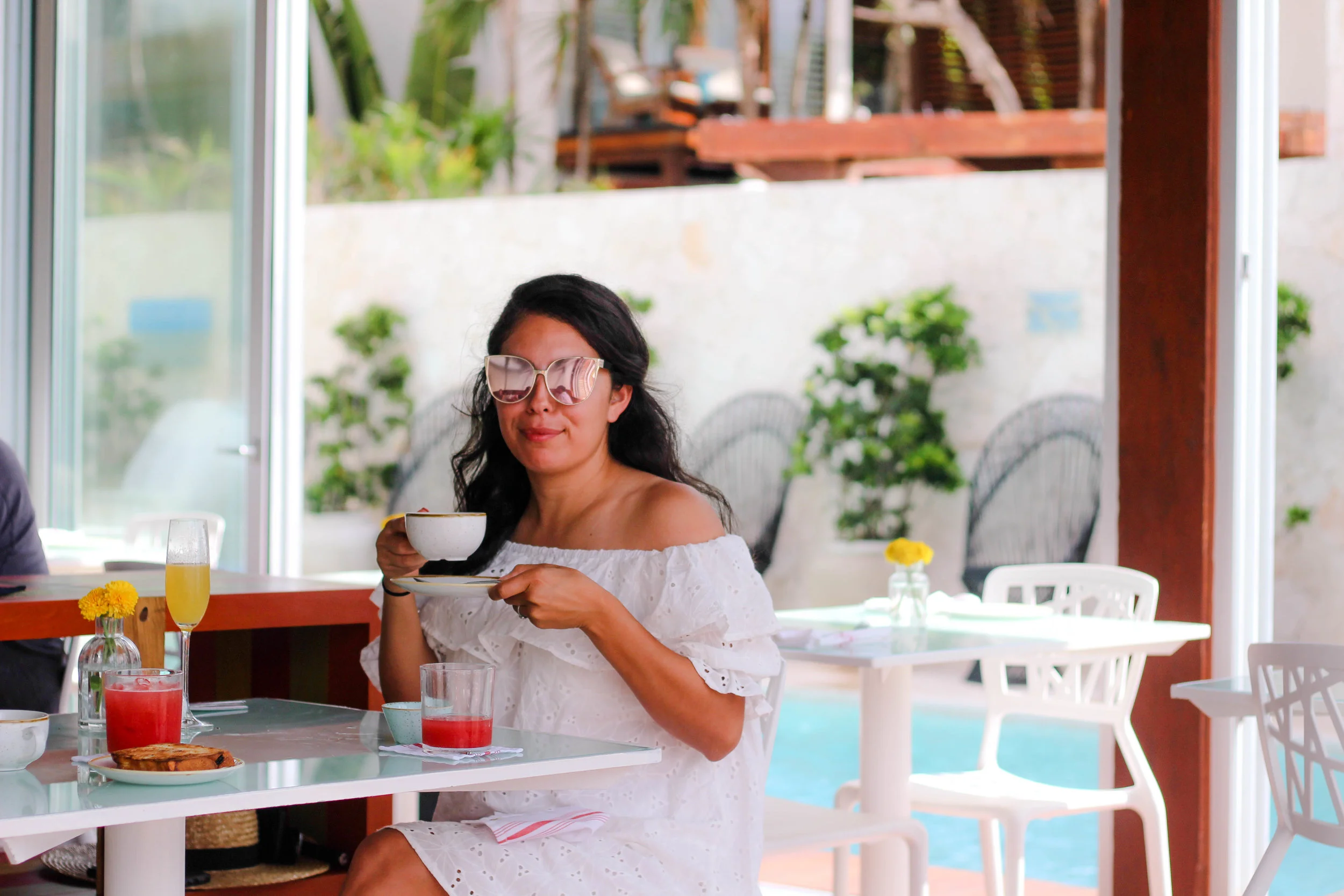 This boutique hotel was breathtaking. We were greeted with mimosas and hot hand towels. Our room was a bit smaller on this property, but still had a private jacuzzi on our patio. Believe me, after a day of exploring it was nice to relax in the comfort of your own space. This hotel included a full 2 course breakfast for all the guests. That amenity alone made me so happy. Although it didn't include access to the beach it did have several cabanas where you could lay down and relax with a view overlooking the ocean.